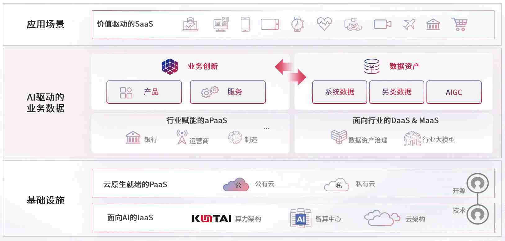 数字时代,,,,围绕企业数字化转型的关键要素,,,,人生就是搏数码开创性的提出数云融合战略和技术体系框架,,着力在云原生、、数字原生、、、AI原生和信创产业上架构产品和服务能力,,,,为处在不同数字化转型阶段的快消零售、、汽车、、、金融、、、医疗、、政企、、、教育、、运营商等行业客户提供泛在的敏捷IT能力和融合的数据驱动能力,,构建跨界融合创新的数字业务场景和新业务模式,,助力企业级客户建立面向未来的核心能力和竞争优势,,全面推动社会的数字化、、、、智能化转型升级。。。。
